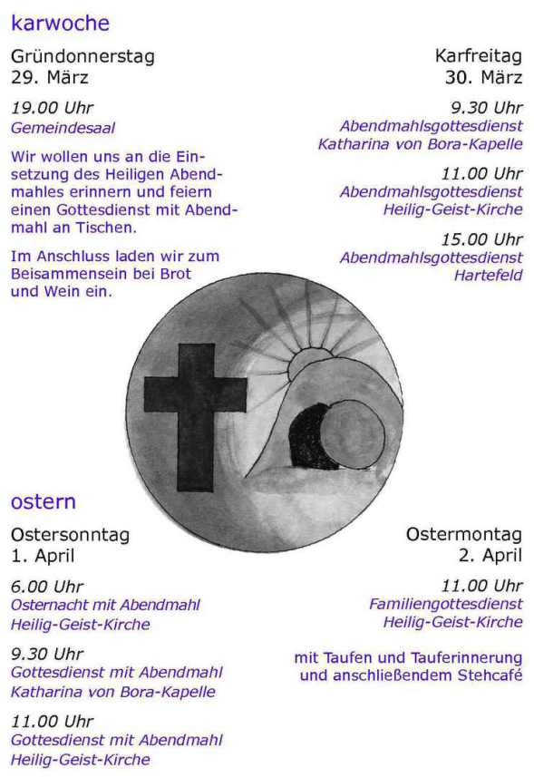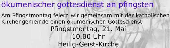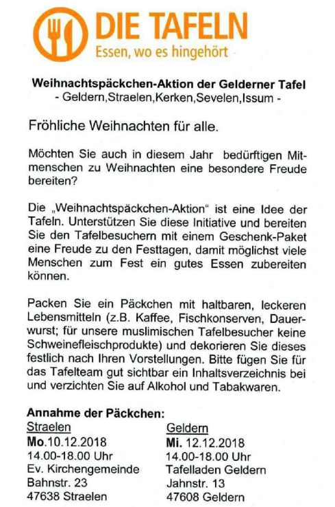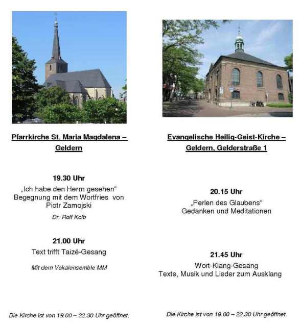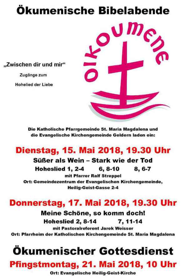 Diese Seite gibt einen Überblick über anstehende sowie vergangene Veranstaltungen in unserer Ev. Kirchengemeinde Geldern. Die aktuellsten Informationen über das Gemeindeleben und weitere kirchliche Nachrichten erhalten Sie über unsere Facebook-Seite.