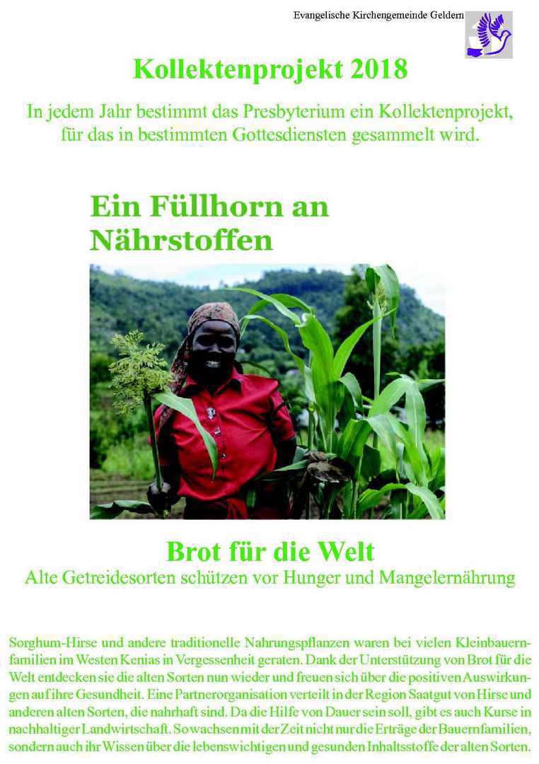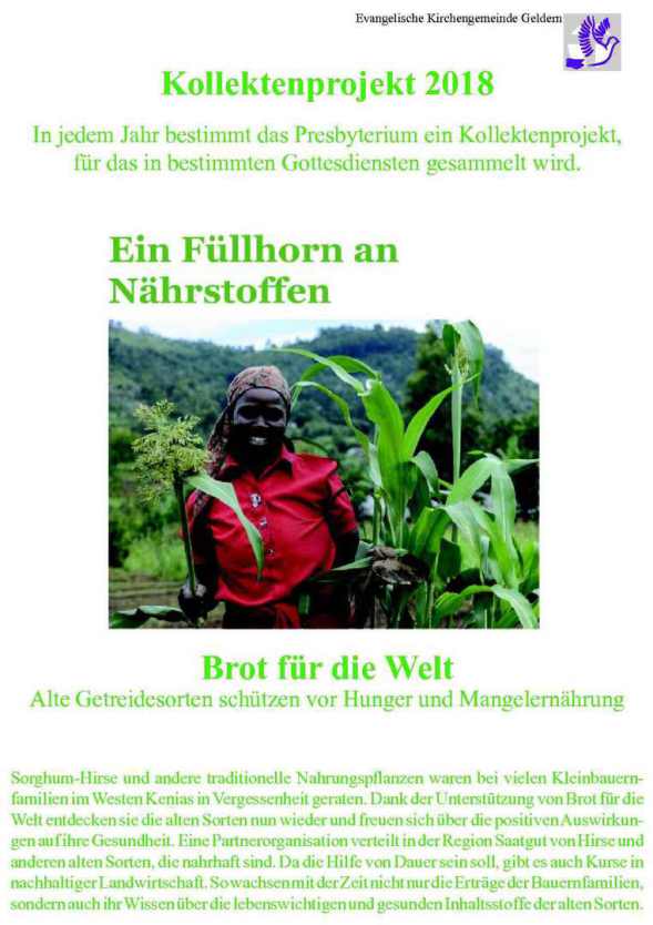 Nicht nur der Gottesdienst ist für alle. Die Jugendlichen überlegten während der Vorbereitung des Gottesdienstes, wie wir viele Menschen in die tägliche Nahrungsversorgung einbeziehen können. Spendenaufrufe allein helfen letztendlich nicht. Es gibt ein Projekt in Kenia, das nachhaltige Hilfe verspricht. Mit diesem Beispiel möchten die Jugendlichen den Gottesdienstbesuchern diese gute Möglichkeit der Hilfe und Unterstützung von Menschen, denen es nicht so gut geht wie uns, näher bringen.