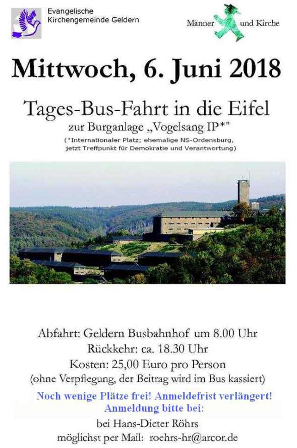 Herzlich eingeladen sind Männer und Frauen, an dieser Tagesfahrt teilzunehmen. Es sind noch einige wenige Plätze frei!