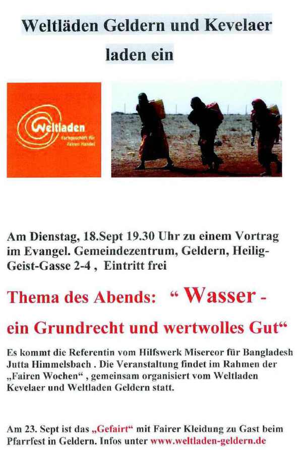 Weltläden Geldern und Kevelaer mit Vortrag zum Thema "Wasser"