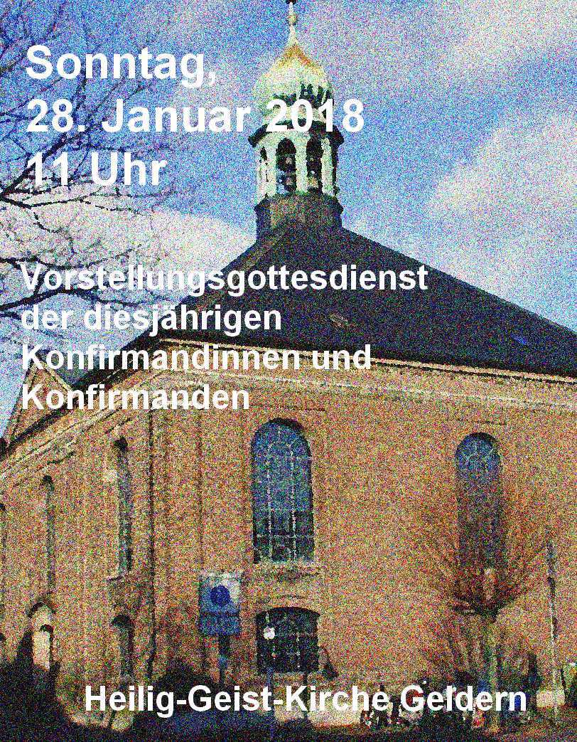 Jugendgottesdienst von Jugendlichen für Jugendliche – hierzu lädt die Evangelische Kirchengemeinde Geldern ein am Samstag, 20. Januar 2018 um 17 Uhr in die Heilig-Geist-Kirche Geldern, Heilig-Geist-Gasse 2-4
