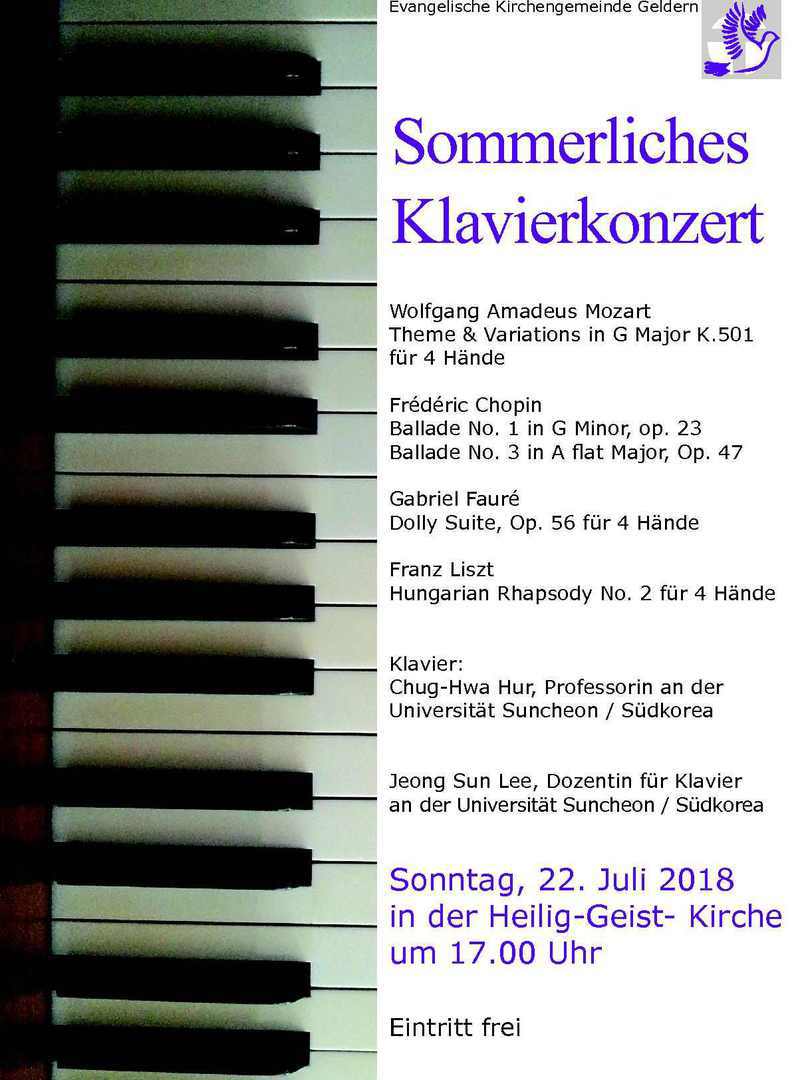 Präsentiert wird das Konzert für Klavier(Denys Proshayev) und Orchester Nr. 3 Sz 119 von Béla Bartòk, „Till Eulenspiegels lustige Streiche“ Tondichtung op. 28 von Richard Strauss sowie „Musique pour les soupers du roi Ubu“ und Sinfonie in einem Satz von Bernd Alois Zimmermann. Es spielen die Duisburger Philharmoniker unter der Leitung von Peter Hirsch. Die Eintrittskarten einschließlich Einführung in das Konzert sowie Bustransfer kosten je nach Platzkategorie 30 Euro/34 Euro. Die Abfahrt des Busses ist um 18.15 Uhr am Busbahnhof Geldern. Anmeldungen sind erforderlich bis zum 19. September bei U. Edelkraut, Tel. 02831 6403 oder Mail: geldern@ekir.de